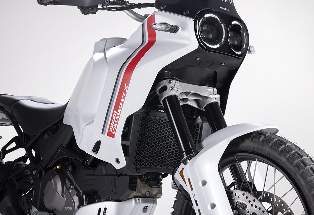 Equipada con una rueda delantera de 21” y una trasera de 18”, la nueva DesertX está diseñada para manejar incluso los terrenos off-road más desafiantes. Ducati ha combinado su experiencia en carretera con un desarrollo off-road dedicado para crear una motocicleta receptiva y fácil de manejar que se siente cómoda en todo tipo de senderos y asfalto.