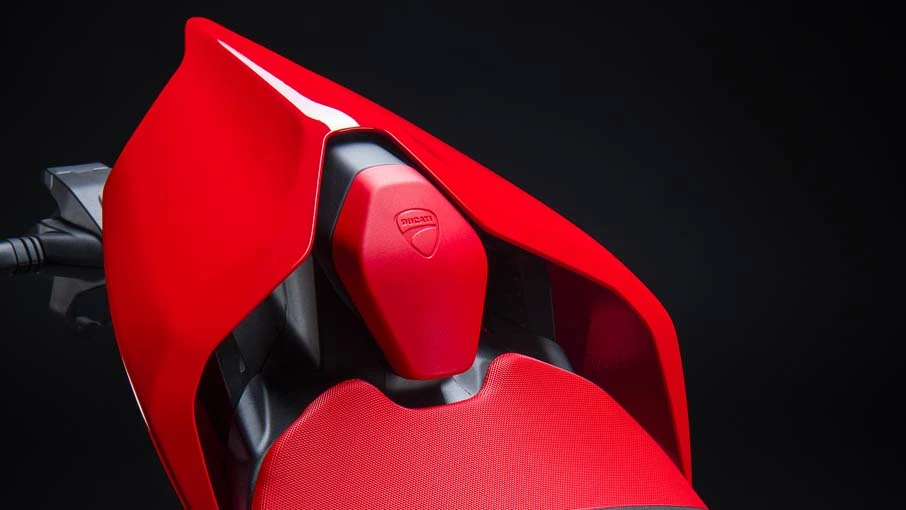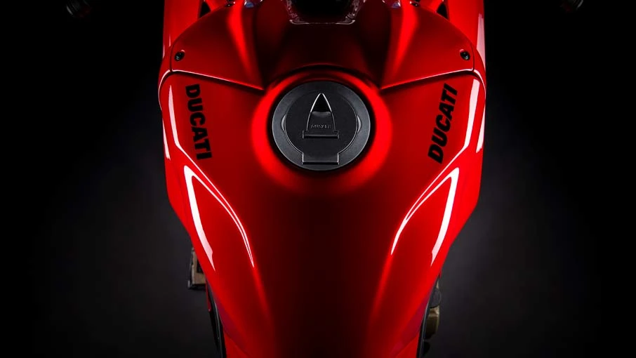 The fuel tank has a new shape that gives it more capacity (+1 litre) and offers a completely different fit area compared to the 2021 version, allowing riders of all sizes to better anchor under braking and to ride faster and longer. Thanks to the new tank shape, the rider is also better integrated into the bike and results therefore more comfortable in the best aerodynamic position. In addition, the contact area of the arms during hanging off phase is also improved.
