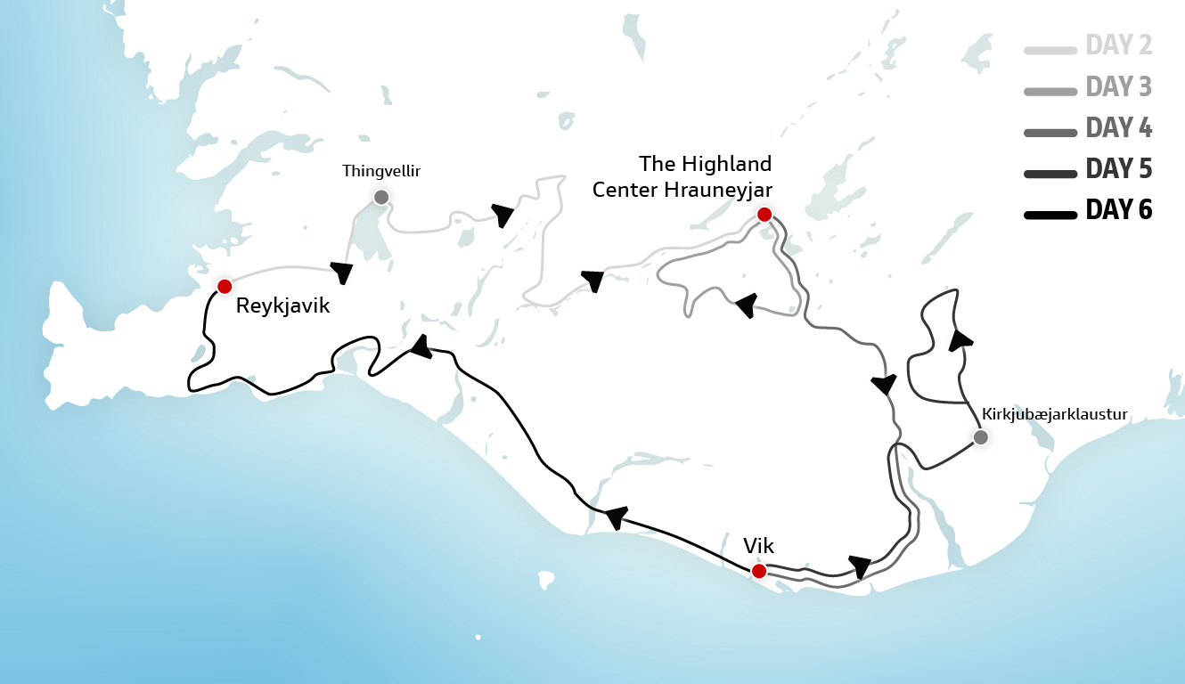 A route along a large natural park, among geysers and waterfalls, which passes through some of the most iconic locations on the island.