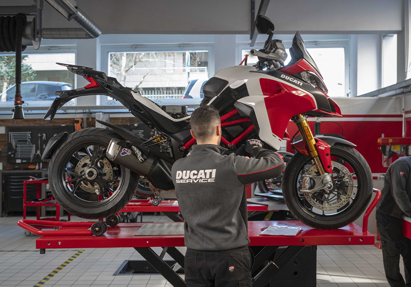 Throughout the world, Ducati offers its customers the support of a team of passionate, expert technicians. Each of them periodically attends refresher courses in their own country or directly in Borgo Panigale, making them true experts of your bike. Moreover, thanks to the diagnostic equipment available to our authorised network, your bike will always be up to date and high performance!