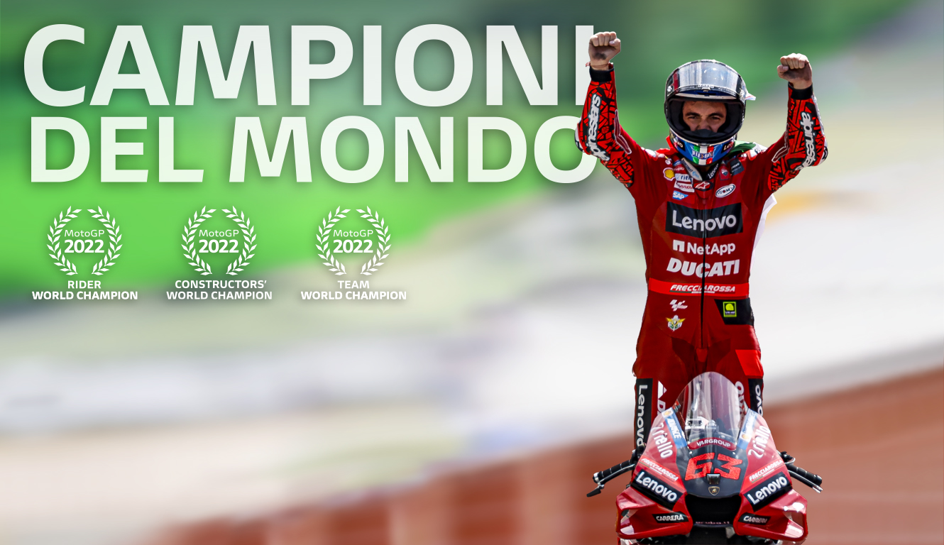 Para el nacido hace 25 años en Turín y para la casa con sede en Borgo Panigale se trata de una consagración histórica: con siete victorias, diez podios y cinco poles durante la temporada 2022, Bagnaia se convierte en el primer italiano en quedarse con el mundial de MotoGP a bordo de una moto italiana, la Ducati DesmosediciGP. El último en lograr una combinación semejante en la división mayor fue Giacomo Agostini, hace 50 años, cuando en 1972 logró el campeonato de 500 cc sobre una máquina MV Agusta.