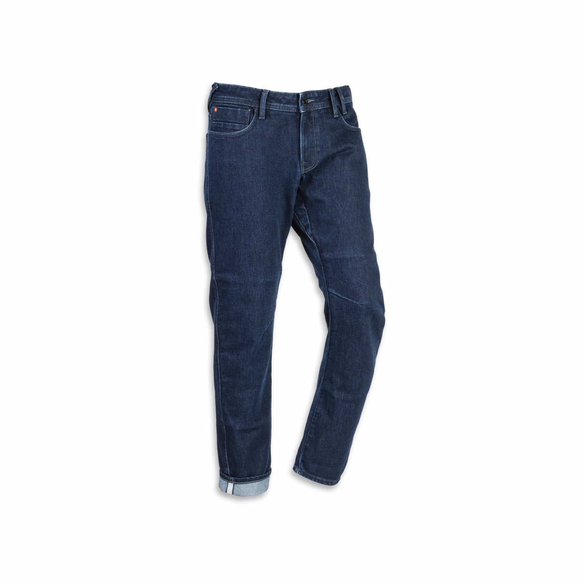 Los pantalones vaqueros para moto City C1 están realizados por Ducati en colaboración con Rev'it y diseñados para un uso urbano. Certificados según las normativas más recientes, están dotados de protecciones extraíbles en las caderas y las rodillas. Excelente resistencia gracias al tejido Denim Cordura® y al algodón de alta tenacidad, suave y resistente a la vez. Su corte aporta holgura y comodidad en la zona de la cintura y los muslos sin apretar nunca demasiado, mientras que las aplicaciones reflectantes aumentan la visibilidad nocturna. Dotados de cuatro prácticos bolsillos exteriores, crean un look de estilo contemporáneo sin renunciar a la libertad de movimiento y la protección adecuada: un auténtico imprescindible para los desplazamientos por la ciudad.
