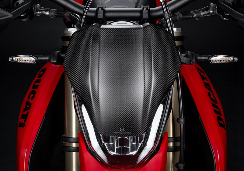 | Standard Equipment | Power Modes, Ducati Power Launch (DPL), Ducati Quick Shift (DQS) Up/Down, Full LED lighting system, Daytime Running Lights (DRL), Tapered aluminium handlebars, Lithium-ion battery | Modes de puissance, Ducati Launch Control (DPL), Système d'éclairage Full LED, Daytime Running Lights (DRL)*, Guidon aluminium à section variable, Batterie Lithium-ion |