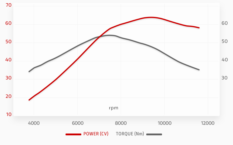 | Power | 63.5 hp (46.7 kW) @ 9,400 rpm |