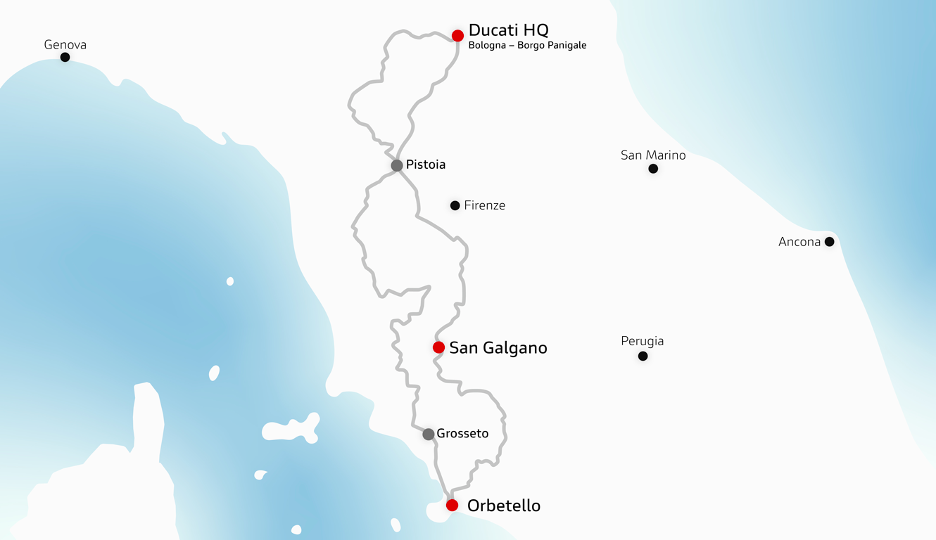 Un voyage inoubliable sur des routes de rêve avec votre Ducati préférée, en traversant les collines des Apennins toscans-émiliens. Un circuit de trois jours et deux nuits à la découverte de quelques-unes des merveilles que la Motor Valley a à offrir. Une équipe de professionnels Ducati vous guidera le long du parcours, spécialement conçu pour présenter le meilleur des Apennins toscans-émiliens.