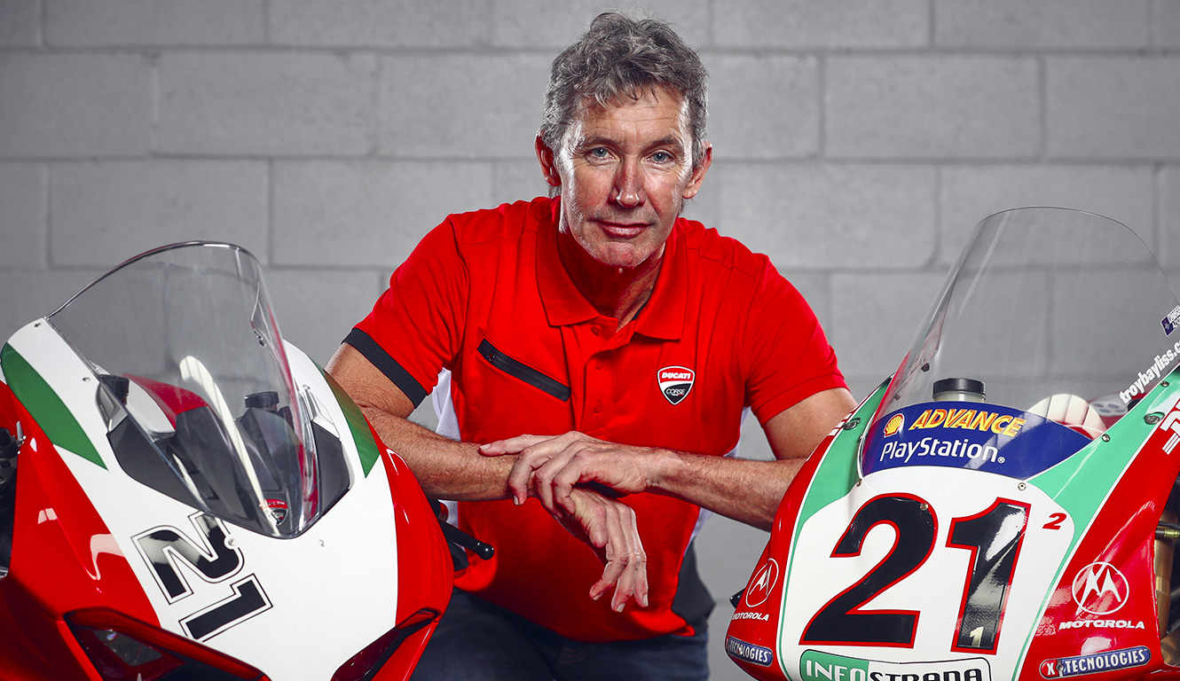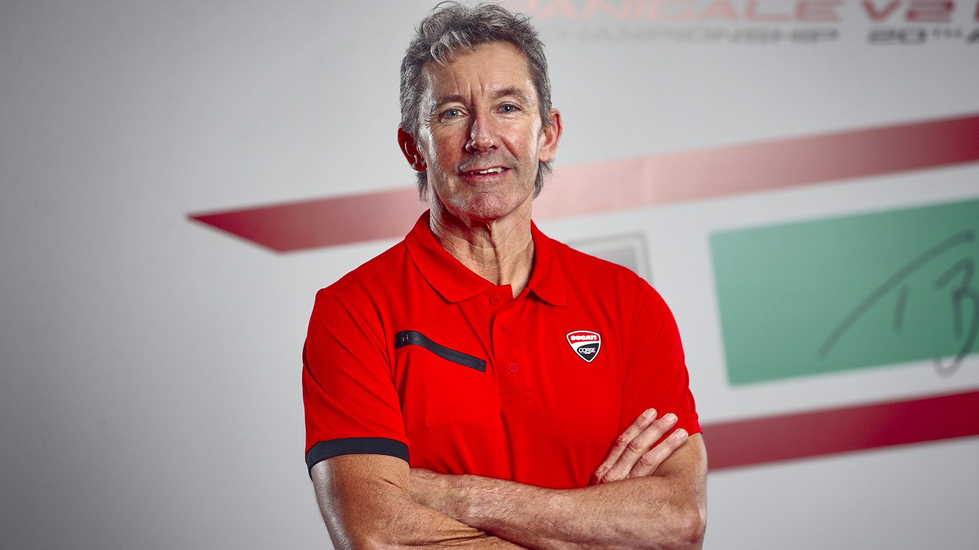 Ik denk dat het een weerspiegeling is van wat we in het verleden samen hebben gedaan. Mijn tijd en mijn carrière speelde zich af op de V-twin, dus als ik de nieuwe motor zie met de V-twin en het trellis frame voelt dat heel goed. Natuurlijk gaat alles met de jaren vooruit. De motoren worden sneller en er zit veel meer elektronica op dan vroeger. Ze zijn zo veel mooier en vriendelijker om op te rijden en een veiligere optie om de mannen sneller te laten gaan. De nieuwe Panigale V2 Bayliss 1st Championship 20th Anniversary is een geweldige kleine all-round motor waar veel mensen plezier aan zullen beleven, en ik kijk ernaar uit om er nog wat rondjes op te rijden. Ik heb ook gevraagd of ik misschien eigenaar kan worden van #21 van de serie, want ik heb ook een paar neefjes van deze motor in de schuur staan en ik zou er graag nog een bij hebben.