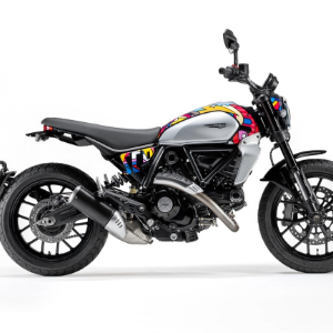 Para dar aos fãs a chance de expressar sua personalidade da melhor maneira possível, a Ducati Scrambler oferece uma ampla escolha em termos de roupas e acessórios. A coleção de acessórios conta com as três propostas de escapamento feitas pela Termignoni, começando com o silenciador para uso nas ruas com acabamento preto e anel contrastante disponível em amarelo, vermelho ou azul. A coleção continua com o escapamento completo de aço, que não é homologado para as ruas, montado em uma posição lateral alta no perfeito estilo Flat Track, com acabamento preto e acompanhado de mapeamento dedicado para a ECU*. A terceira proposta é um silenciador curto para uso nas ruas, também em aço, novamente com acabamento em preto e acompanhado de um mapa dedicado*. Para essas duas versões, também será possível escolher a cor do anel de contraste entre as três cores propostas.