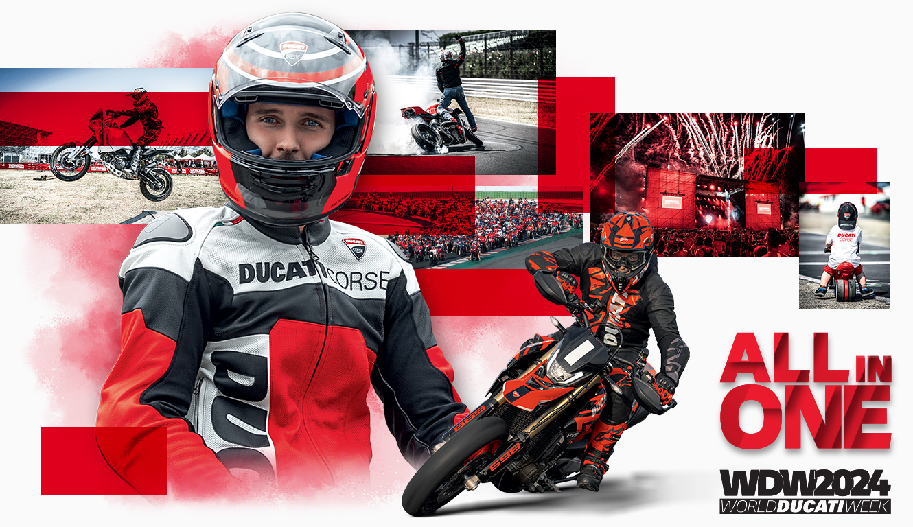 A fabricante com sede em Bolonha publicou o programa desses três dias de celebração dedicados a todos os entusiastas do motociclismo no site oficial e no aplicativo WDW (disponível para download em dispositivos Apple e Android). Este é o mais extenso calendário de atividades na história da World Ducati Week, com eventos únicos e irrepetíveis que se juntam a outras experiências programadas em todos os três dias do evento, como a exposição dedicada à história da família Ducati 916 e a presença do Truck - Team MX apresentando o novo e empolgante capítulo da Ducati no motocross. O objetivo é claro: concentrar e transferir toda a essência da Ducati para os participantes, respeitando o lema "All in One".