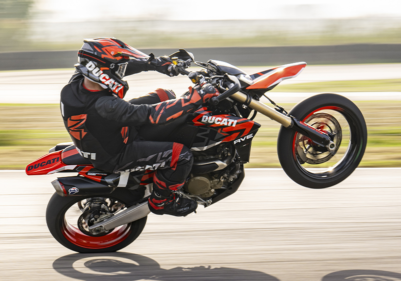 An essential, light and agile motorbike born only for getting you excited. Ducati's fun bike is available in Ducati Red and RVE livery.