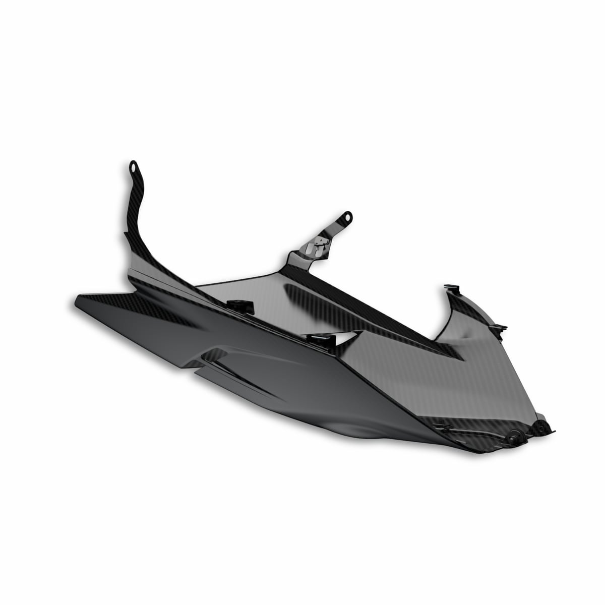Dérivé de l'univers racing en carbone avec trame twill exposée, comme celui de la supercar Lamborghini, caractérisé par une résistance élevée et un look sportif incomparable. Ne peut être utilisé qu'avec un échappement racing Akrapovič. Caractère audacieux et attrait à couper le souffle pour un composant qui s'accorde parfaitement aux lignes de la moto.