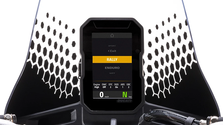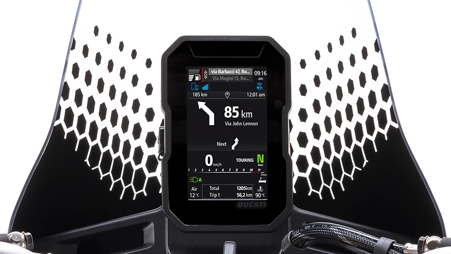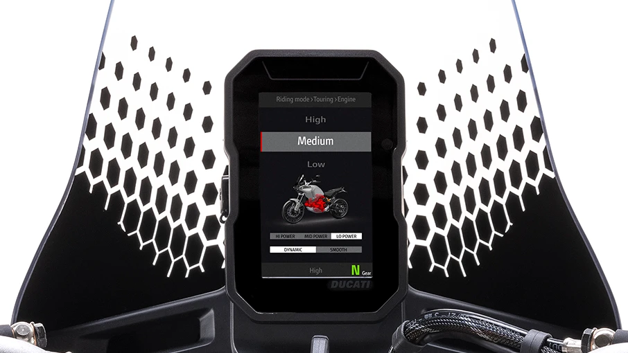 Le mode de conduite est dédié à l'utilisation touristique, avec une puissance maximale du moteur et une réponse en douceur de l'accélérateur. Les commandes d'aide à la conduite sont conçues pour garantir une sécurité maximale, même lorsque la moto est entièrement chargée.