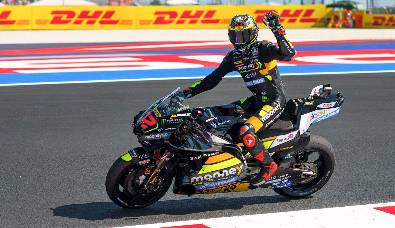 La moto arbore le noir et le jaune de l'équipe Mooney VR46 qui a coloré la grande saison de Marco Bezzecchi, troisième du championnat du monde MotoGP avec sa Desmosedici GP22 #72.