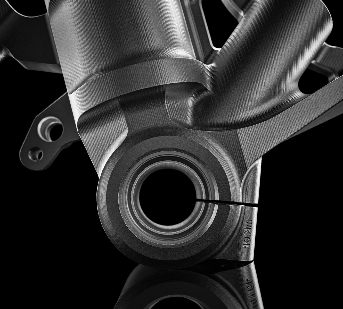 Dans le projet Supeleggera V4, le défi prend une toute autre dimension par rapport au prototype de course : il faut atteindre des performances de pointe tout en respectant les exigences de fiabilité et d’homologation. Il s’agit de pousser à l’extrême les caractéristiques des matériaux et des composants sans pouvoir prédire les contraintes réelles auxquelles ils seront soumis, de créer des composants avec des technologies expérimentales pour les appliquer à une moto qui n’est pas conduite par un seul pilote, mais qui doit être homologuée. Le composant que nous concevons ne doit plus durer juste 10 courses. Il doit durer pour toujours. Et donc le travail de calcul et de simulation est deux fois plus important que pour n’importe quelle autre moto que nous produisons. »
