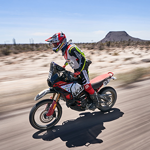 La DesertX est le modèle avec lequel le constructeur de motos Borgo Panigale entre dans le segment de l'enduro de moyenne cylindrée. La moto est conçue pour affronter le tout-terrain le plus exigeant et c'est pour cette raison qu'elle est équipée d'une roue avant de 21 pouces, d'une roue arrière de 18 pouces, d'un long débattement de suspension et d'une grande garde au sol. Propulsée par le moteur Testastretta 11°, DesertX garantit une conduite confortable, facile et sûre sur tout type de parcours grâce à l'attention portée à l'ergonomie, à une étude aérodynamique soignée et à un équipement technologique avancé.