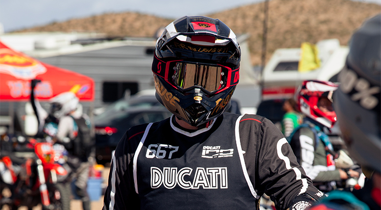 Chinnock a pris le départ au guidon de la Ducati 450 R/T Desmo de 1971 dans la catégorie Biltwell 100 Dual Shock (1971-1990) avec pour objectif de terminer la course. Malgré un encrassement de bougie dès le premier tour, qu’il a remplacée en cours de route, puis un passage dans un fossé rempli d’eau de pluie au troisième tour qui a tordu les fourches au niveau des tés de fourche, il a parcouru les 27 derniers kilomètres avec un guidon tordu pour terminer la course. De retour le lendemain, il a piloté la Desmo450 EDX pour concourir dans la catégorie Modern, faisant le lien entre l’héritage tout-terrain des débuts de Ducati et l’évolution actuelle de ses produits. Il est passé de la 9e à la 6e place au deuxième tour et comptait réduire l'écart au troisième tour, mais une chute l'a contraint à l'abandon. De son côté, le pilote Ducati Jordan Graham a livré une performance dominante, décrochant la 1re place au classement général au guidon de la Fasthouse Ducati Desmo450 EDX.