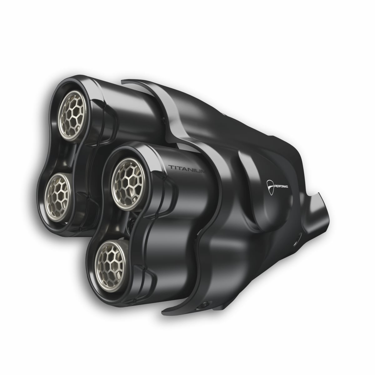 Sportivité, légèreté et résistance, telles sont les caractéristiques du cache silencieux pour échappement homologué. Les culots en titane et le pare-chaleur en aluminium anodisé noir rehaussent le design du système de série, le rendant encore plus attrayant.