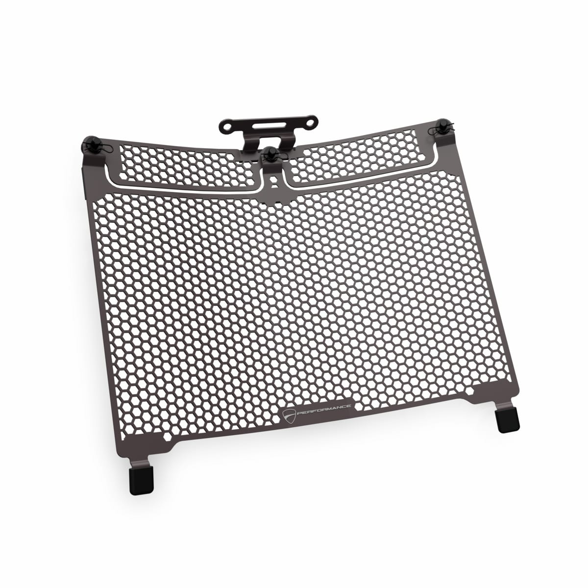 Realizzata in alluminio, contribuisce a proteggere l'impianto di raffreddamento dai detriti, esaltando al contempo l'estetica della moto.