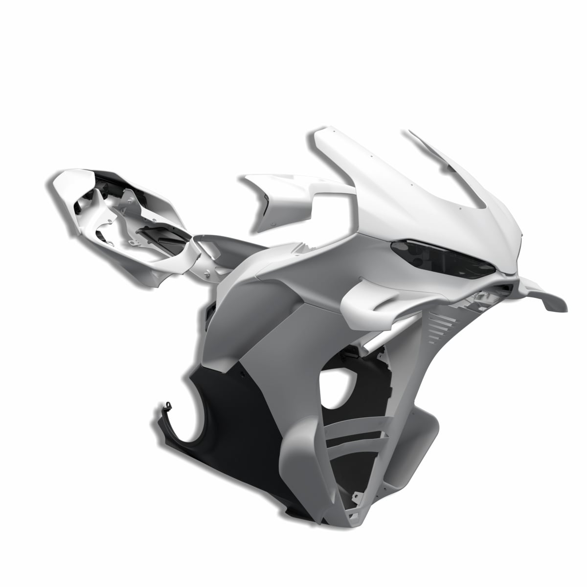 Realizzate in materiale plastico di alta qualità, vengono fornite non verniciate per dare libero sfogo alla creatività e personalizzarle con i propri colori. Dotate di fanale anteriore e posteriore senza luci LED. Il fanale anteriore è fornito di tappo che può essere disattivato tramite DDS, mentre quello posteriore monta un tappo con resistenza (connettore elettrico) che non riporta errori sul dashboard in caso di rimozione. Le carene sono realizzate appositamente per la pista e da utilizzare in sostituzione a quelle fornite di serie, che potrebbero rovinarsi in caso di cadute. Un corredo irrinunciabile per mettere in risalto il carattere racing e originale della propria moto e scatenare tutta l'energia Ducati in pista.