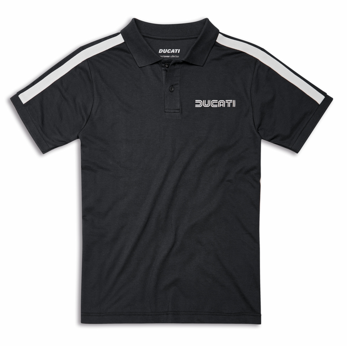 Polo-Shirt Heritage aus leichtem Baumwollpikee: Ein atmungsaktives und bequem zu tragendes Gewebe, das ideal für die warme Jahreszeit ist. Die elegante und vielseitige Farbe Staubblau wird durch weiße, an den Schultern angebrachte Streifen zur Geltung gebracht, die dem Design Schwung verleihen und einen geschmackvollen Farbkontrast bilden. Das von Giorgetto Giugiaro entworfene, kultige Ducati Logo ist mit 3D-Effekt an Brust und Rücken aufgedruckt und unterstreicht die Verbindung zwischen Tradition und Innovation. Das Polo-Shirt Heritage ist Teil der Capsule Collection, die dem Ducati Jubiläum gewidmet ist und zeigt sich als neue Auslegung eines Klassikers mit sauberer Linienführung und moderner Passform.