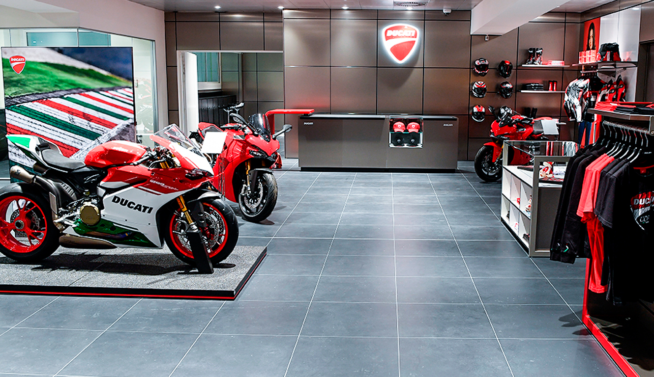 Descubre las nuevas Panigale V4, Multistrada 1260, Monster 821 y Scrambler 1100. La nueva Ducati Milano Store no es una simple tienda, sino un lugar de prestigio en tres plantas, que encarna el mundo, el estilo y los valores de Ducati. Con una superficie total de 2.100 m2, la nueva Ducati Milano Store ofrece toda la gama Ducati y una amplia selección de accesorios y ropa. Visite nuestra área dedicada "Land of Joy", el Scrambler Camp, donde encontrará todo el universo Scrambler.