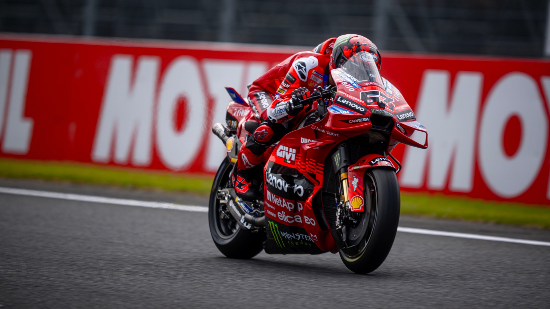 El Ducati Lenovo Team ha afrontado la primera jornada en pista en el Mobility Resort Motegi, el circuito que acoge el Gran Premio de Japón. Marc Márquez ha completado la sesión de Practice en tercera posición, con Francesco Bagnaia en séptimo lugar.