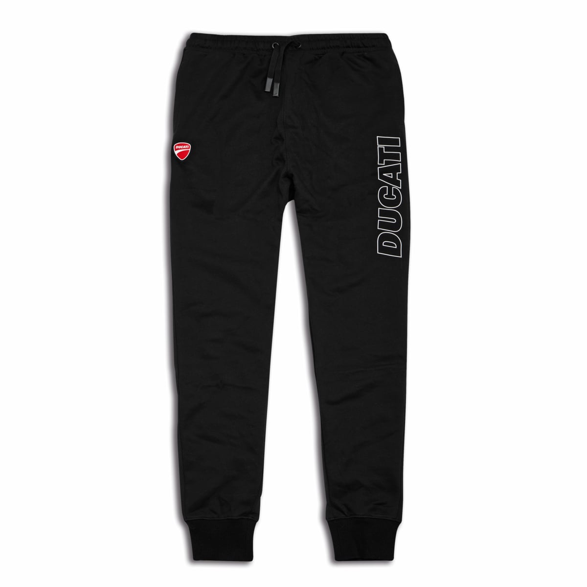 Practicality and style are what make our Ducati Logo pants perfect both for practicing your favorite sport or adding a touch of character to a casual ensemble. The black background boasts a contrast-color profile of the Ducati logo and the bright red on the shield patch. The drawstring waist, cuffs and two outer pockets make this a highly practical and comfortable garment to wear.
