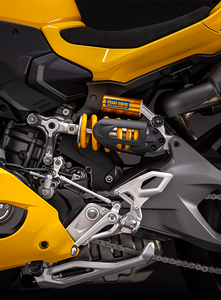 Fully adjustable Öhlins monoshock. Aluminium double-sided swingarm |