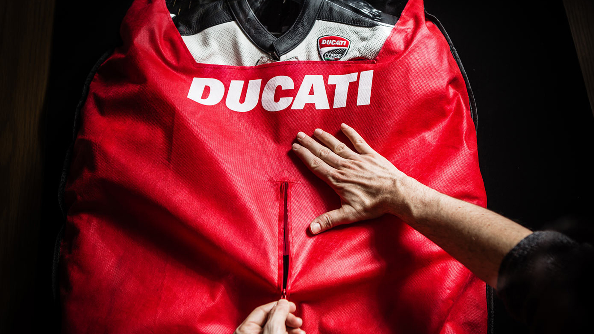 Purchase a bespoke SuMisura suit, between December 1st 2025 – February 28th 2026 and you will receive a free Ducati Corse Replica MotoGP trolley by Diadora.