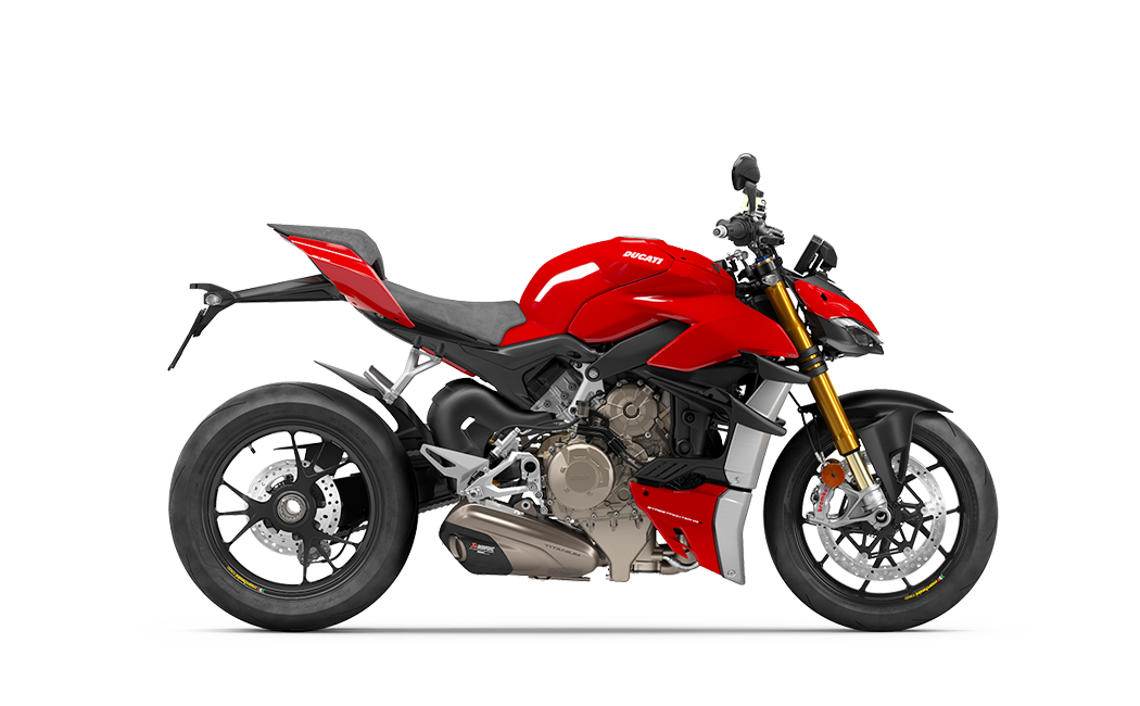 Complete titanium exhaust system. An exclusive accessory to make the Streetfighter V2 even more unique and exciting. Racing materials for top performance. Designed and developed for racing from the manufacturing expertise of Akrapovič, each part of this system is made from a special titanium alloy ensuring not only considerably lower weight, but also great resistance to the high temperatures that can be reached. The exhaust system significantly improves the already high weight/power ratio.