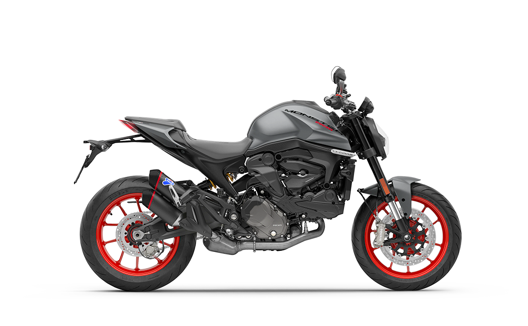 Slip-on silencer system produced by Termignoni, developed to enhance the performance of the Monster. Dedicated racing map maximises power and performance, delivering a thrilling sound. The lightness of the carbon fibre and the design of this accessory complement the lines of the bike, enhancing its sporty character.