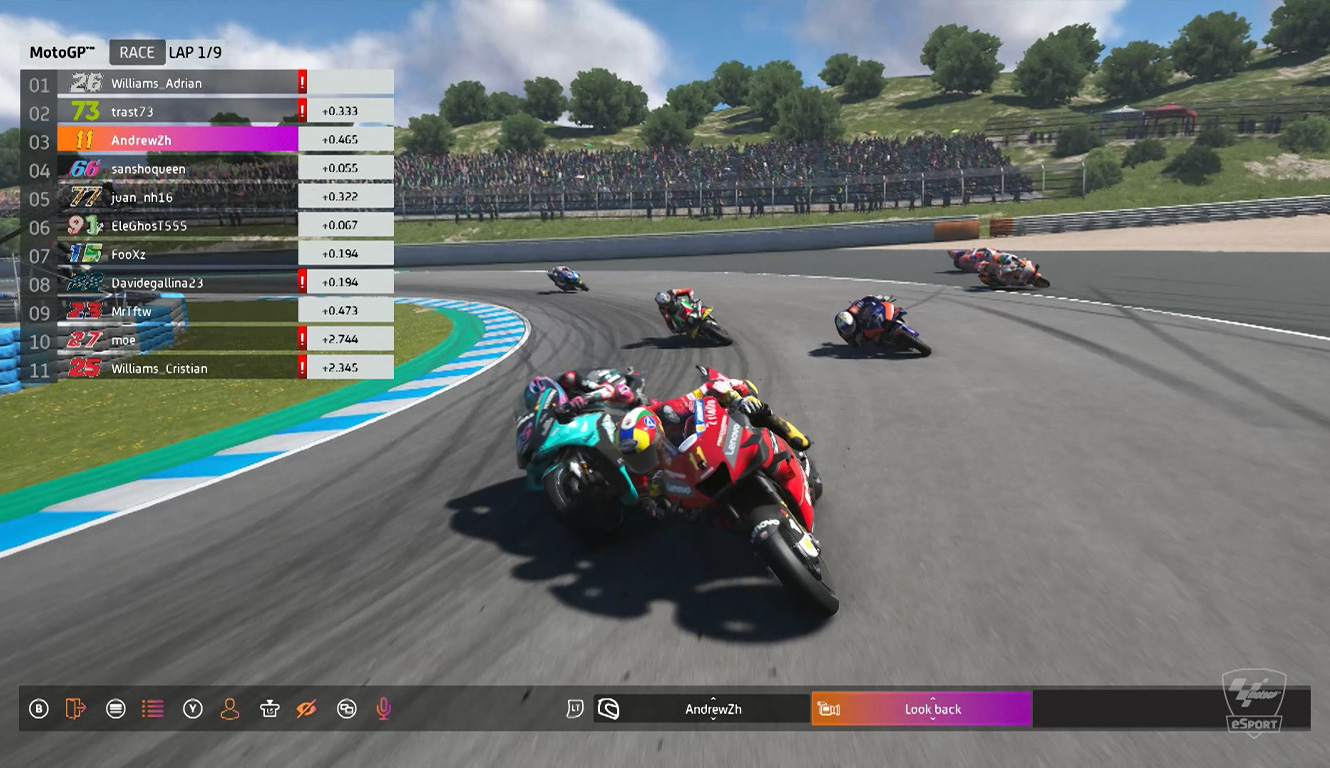 In the second race, which was held this time at the Spanish race track in Jerez, the reigning 2019 MotoGP eSport Champion had more difficulties to face. The Ducati Corse eSport rider got off the line from the first row once again, from third position, and in the early stages, he managed to stay at the front riding with a steady pace.