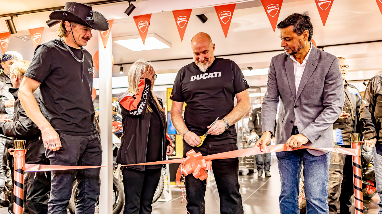 The grand opening celebration took place on Saturday, 27 September, with a ribbon-cutting ceremony led by Ducati UK Managing Director, Fabrizio Cazzoli, alongside store owner Bob Sheldon and British Superbike rider, Scott Redding.