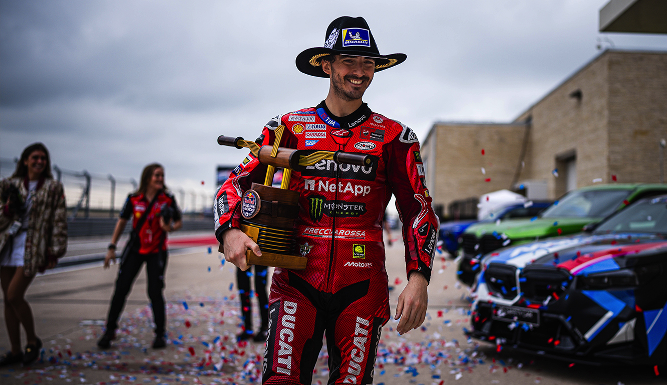 HomeFrancesco Bagnaia and the Ducati Lenovo Team have come out victorious in the third Grand Prix of the season at Austin’s Circuit of The Americas. Marc Márquez’s race came to an early end following a crash near the halfway point of the race, while in the lead.