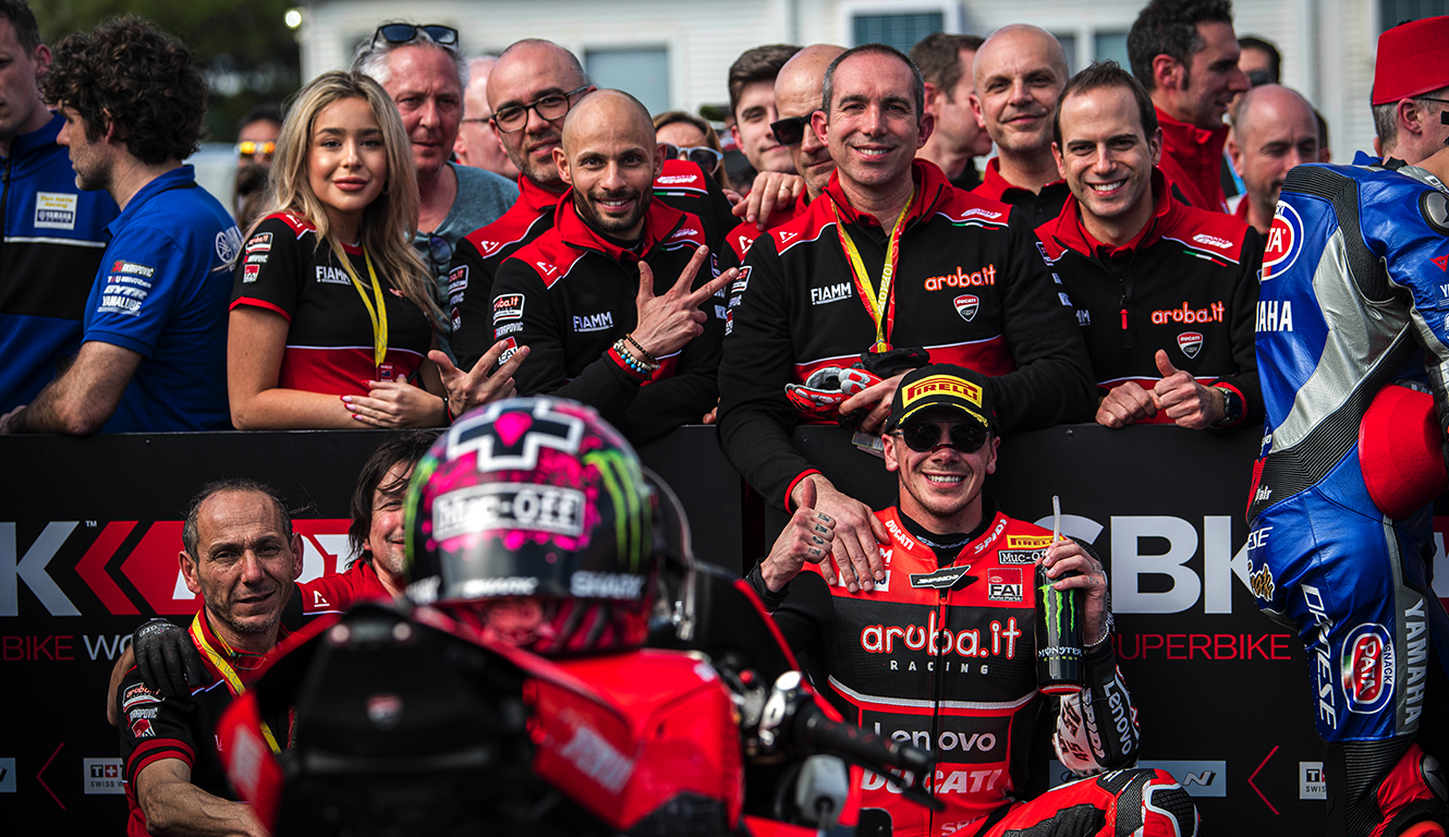 Starting from the front row (P2) after a convincing Superpole, Scott led the race from lap 12 to lap 16 before being involved in a gripping battle with the Razgatlioglu (Yamaha), Van Der Mark (Yamaha) and Lowes (Kawasaki). On the final lap, the British rider tried to create the conditions to exploit the power of his Ducati on the final straight, conquering the third place just 41 thousandths of a second from Razgatlioglu and 7 thousandths of a second from Lowes.