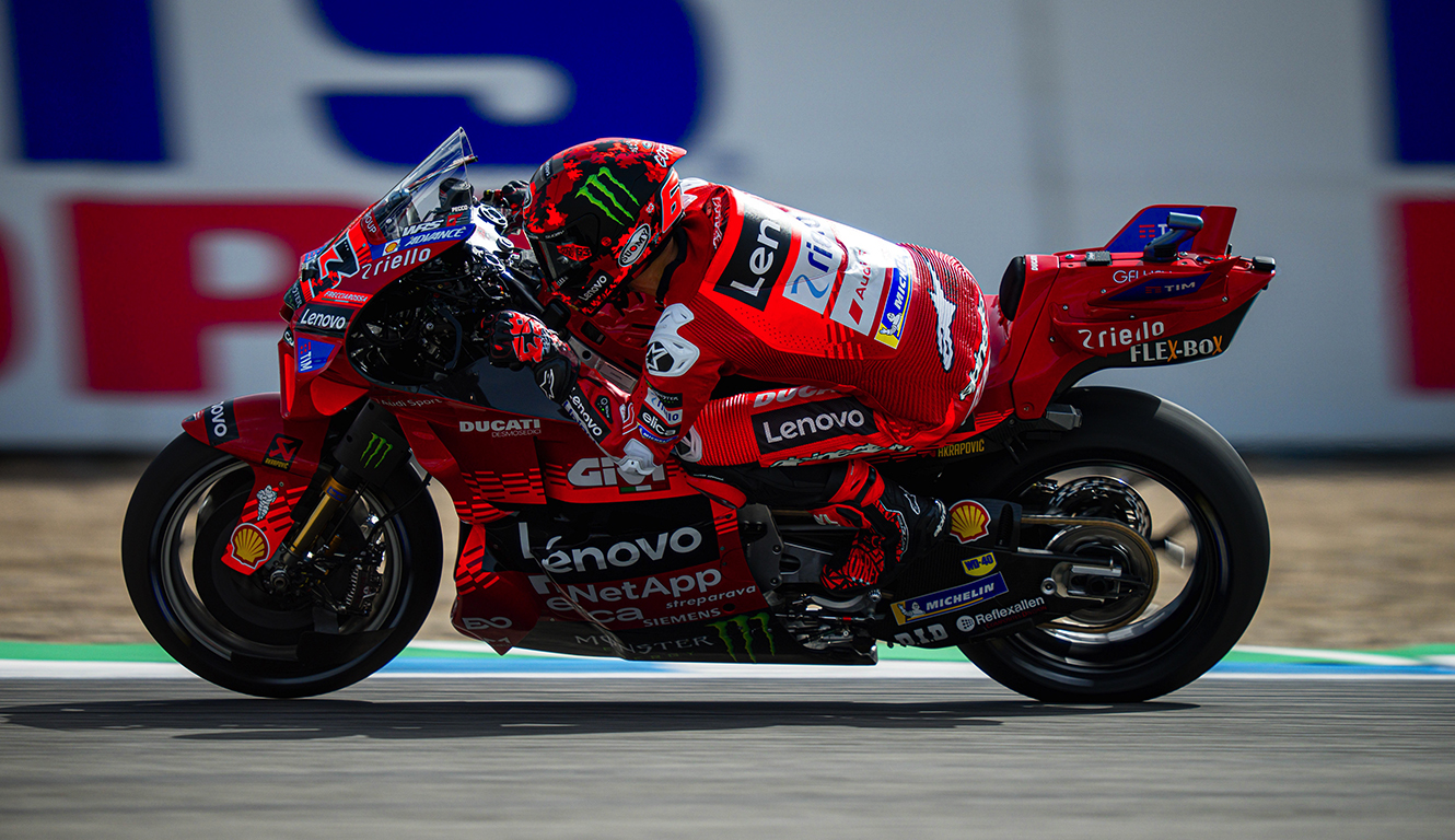 HomeThe Ducati Lenovo Team tackled the opening day of action for the Estrella Galicia 0,0 Grand Prix of Spain at the ‘Circuito de Jerez – Ángel Nieto’. Francesco Bagnaia finished the Practice session in second place, while his teammate Marc Márquez was fourth.