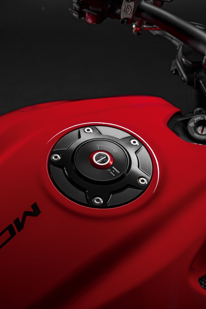 The unmistakable Ducati design is combined with Rizoma's experience to create a unique detail, made entirely in Italy, which enhances the bike's aesthetics. Made from billet aluminium, it maintains its original appearance over time thanks to high quality anodising. Equipped with an anti-tamper system to guarantee maximum safety. The special key supplied, which reproduces the Ducati shield, makes this accessory stand out for its design and makes refuelling much faster, in a perfect combination of functionality and style.