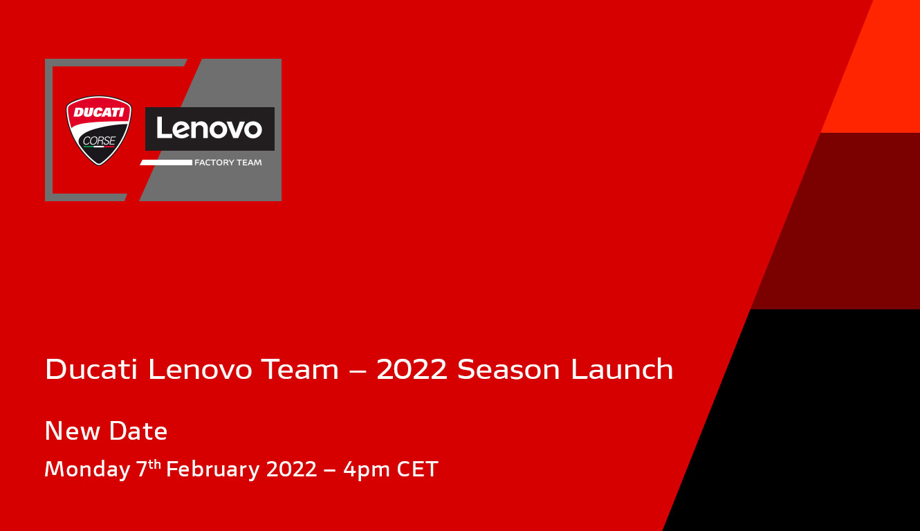 La nuova livrea delle Desmosedici GP del Ducati Lenovo Team verrà comunque svelata in anteprima online il 31 gennaio, giorno in cui il collaudatore ufficiale Ducati Michele Pirro scenderà in pista a Sepang per il test di shake-down, in programma dal 31 gennaio al 2 febbraio.