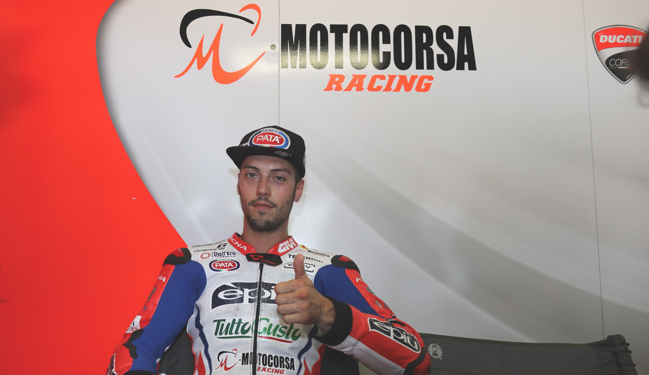 Classe '87, di Brescia, 6 stagioni nel mondiale 125 gp, 9 nel mondiale Superbike, 16 podi in carriera tra mondiale Supersport e Stock1000, il suo miglior risultato è la vittoria del gran premio di Imola classe supersport nel 2014, ed il 3° posto in classifica generale del campionato del mondo Supersport nel 2015. Sarà l'asso bresciano a tenere alti i colori del Team piemontese davanti al caldo pubblico italiano questo weekend, 21-23 giugno.