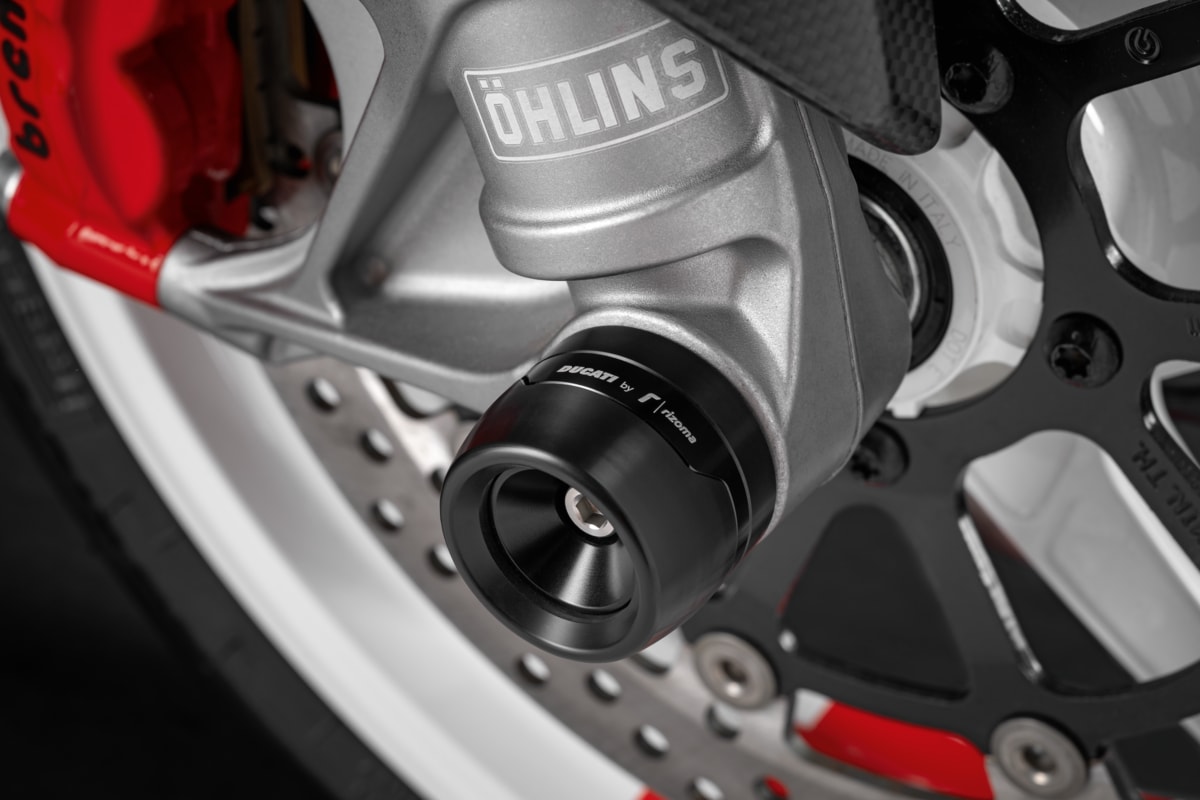 Ducati 独特のデザインと Rizoma の豊富な経験がひとつになったアクセサリーです。アルマイト処理が施された高品質アルミニウム製で転倒時にフォークをしっかりと守ります。高品質なマシニング加工が施され、スタイリッシュなテイストによりバイクのフロントをより美しく魅せます。