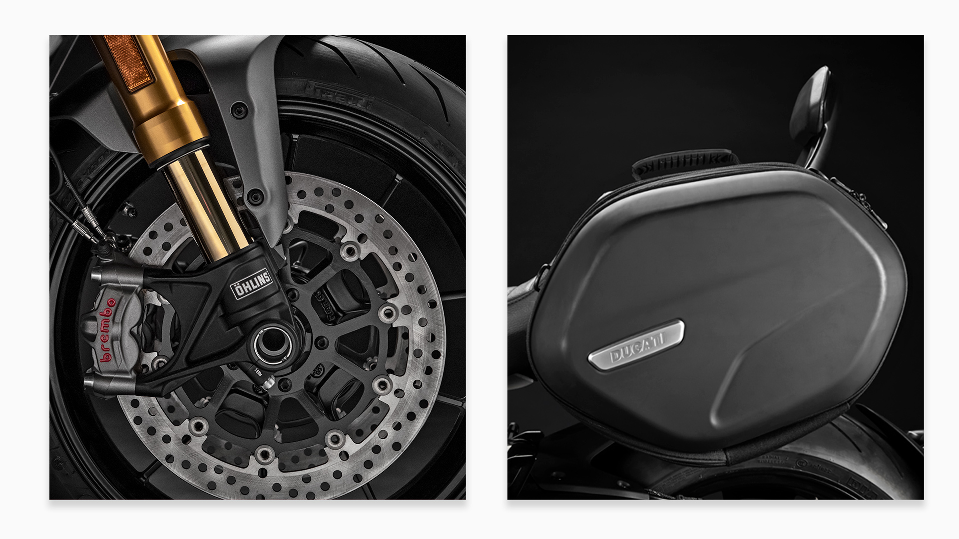 ディアベル1260 Sは、GIVIと共同開発したセミリジッド・サイドパニアを左右に装着しています。そのラインはバイクのスタイルに完璧と溶け込み、旅に必要なものをすべて収納できる容量を備えています。