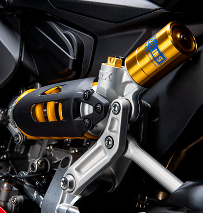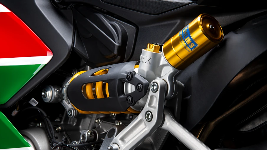 パニガーレV2と同様、このエンジンの卓越したパフォーマンスは、主に新しいインジェクターとインレットダクトによって達成しています。インジェクターは、各シリンダーに2つ(スロットル・バタフライの上下)設置され、より大型化されて角度が見直されています。新しいインレットダクトのエア供給量は以前と同じですが、圧力損失が削減されて、吸気効率が向上しています。楕円スロットル・ボディの寸法は、62mm相当で以前のユニットと同じです。スロットル・ボディは、フル・ライド・バイ・ワイヤ・システムを介して互いに独立して制御されます。