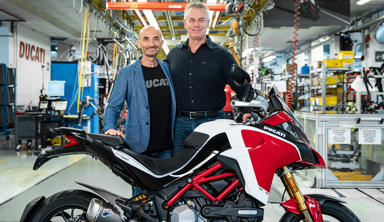 最初のムルティストラーダが工場をラインオフしてから16年が経過した今年、ムルティストラーダ・ファミリーの総生産台数が10万台に達しました。10万台目のムルティストラーダは、ドイツのドゥカティスタ、デイブ・ハヤードがデュッセルドルフ・ディーラーでオーダーした1260パイクス・ピークです。このモーターサイクルには、トップブリッジに記念のレーザー刻印が施され、納車式ではドゥカティ最高経営責任者(CEO)のクラウディオ・ドメニカーリが直接モーターサイクルを引き渡すというサプライズが演出されました。
