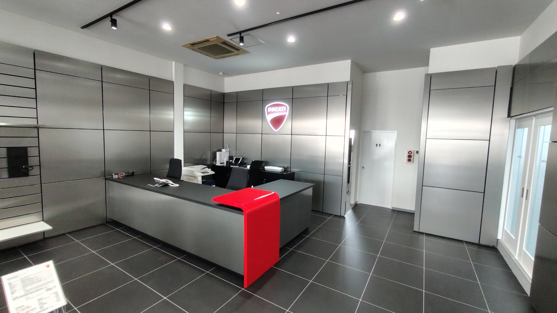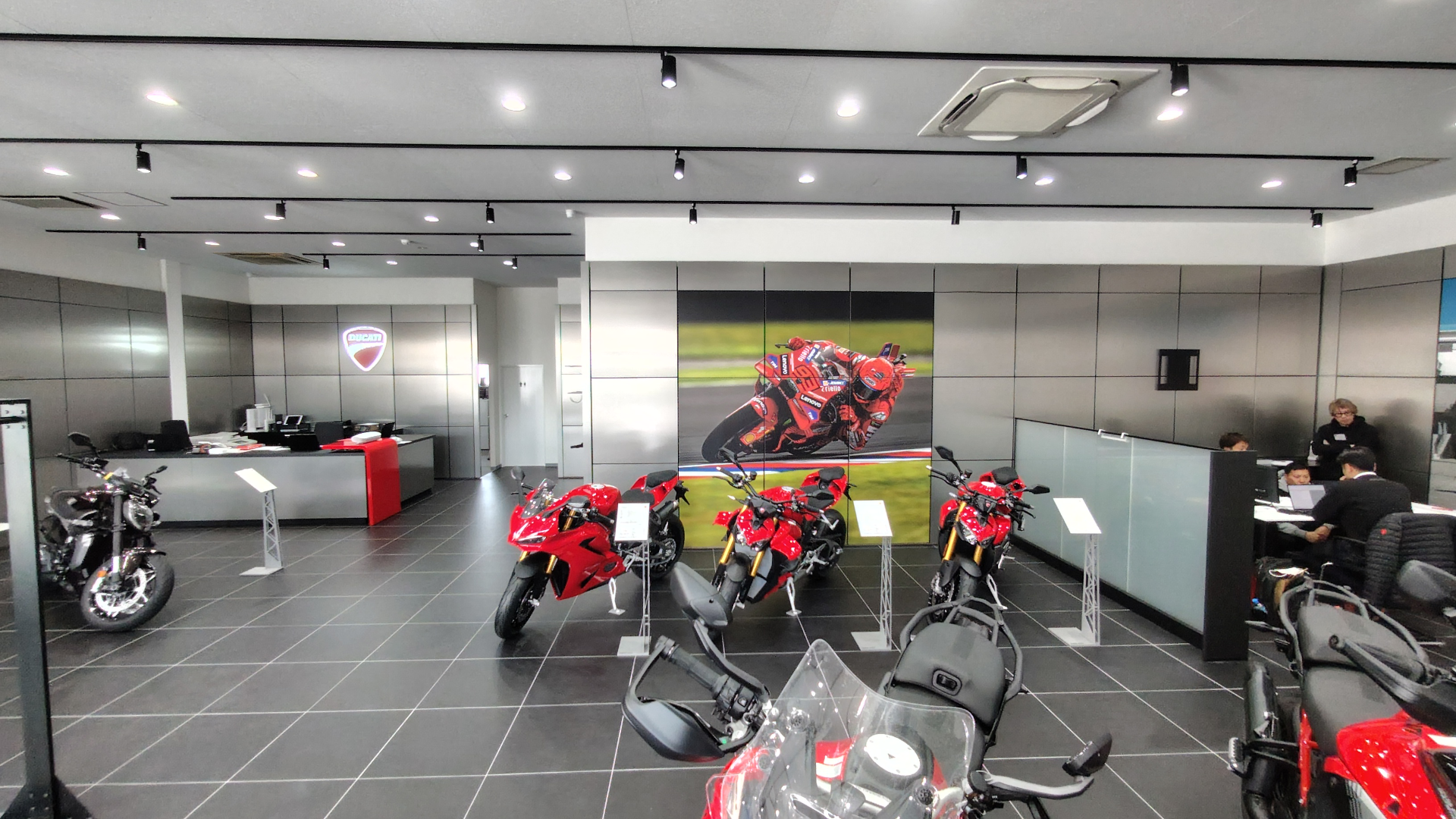 地域特性に合わせて十分な駐車場をご用意し、200㎡に及ぶショールームと開放感のある天井高はドゥカティの魅力を多くのお客様に感じて頂ける店舗となっており、ドゥカティを待ち望まれていた地域の皆様にドゥカティ・ブランドの魅力を広く伝えてまいります。