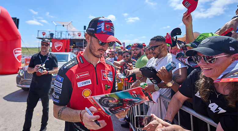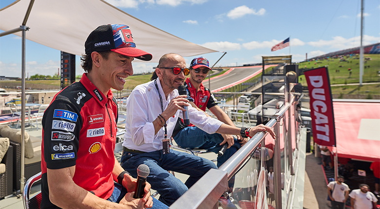 Trabaja con nosotrosDucati Island vuelve al Gran Premio Red Bull de MotoGP™ de las Américas del 27 al 29 de marzo de 2026 en Austin, Texas, coincidiendo con el centenario de Ducati y trayendo de vuelta a Texas la celebración más apasionada del mundo del motociclismo. Únete a otros Ducatisti para animar a nuestros pilotos campeones, Marc Márquez y Francesco Bagnaia.