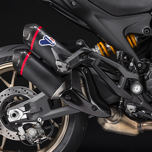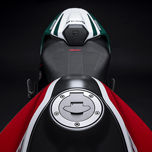 | Equipamiento estándar | Ducati Quick Shift, Ducati Power Launch, display TFT de 4.3" TFT, faro Full LED, intermitentes dinámicos*, toma USB, cúpula, tapa de asiento pasajero, pinzas Brembo Stylema®, silencioso doble Termignoni homologado, amortiguador de dirección Öhlins, batería de ion-litio, guardabarros en carbono |