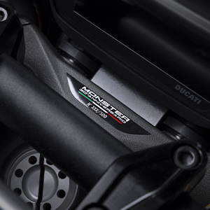 La Monster 30° Anniversario va directoa al corazón de los aficionados con su librea conmemorativa, realzada con detalles de alta calidad y un sofisticado paquete técnico que combina elegancia y actitud deportiva.
