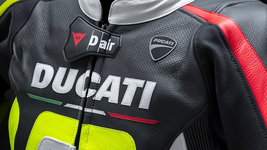 El mono Ducati Streetfighter V4 Lamborghini está equipado con bolsa de aire integradao y, por lo tanto, está destinado exclusivamente al uso en pista. En caso de impacto o deslizamiento, se activa para proteger los hombros, el cuello, la clavícula y el pecho. Está disponible en tallas estándar y personalizadas, que pueden obtenerse en un concesionario autorizado Ducati.