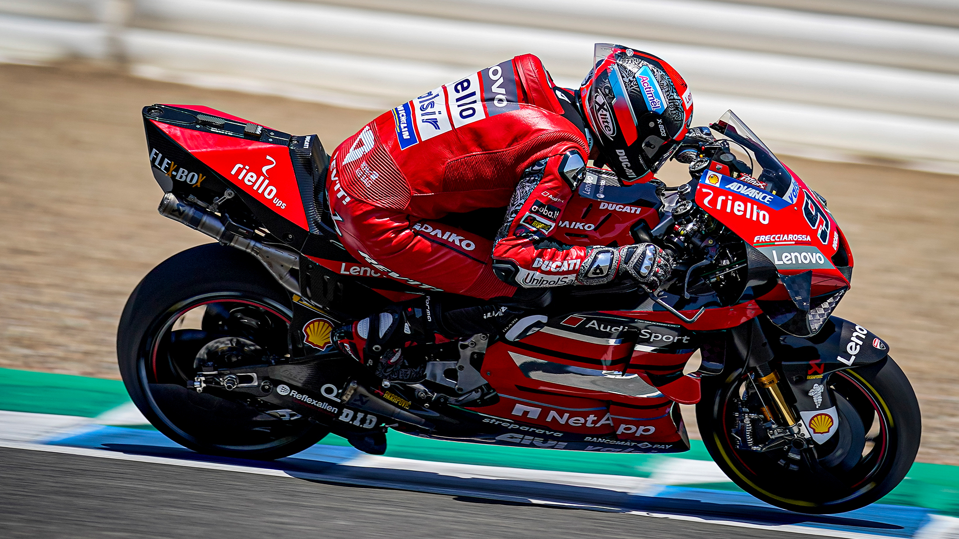 Trabaja con nosotros Los dos pilotos del Ducati Team hoy han vuelto a la acción en el Circuito de Jerez – Ángel Nieto para disputar los dos entrenamientos libres y el clasificatorio del Gran Premio de Andalucía.