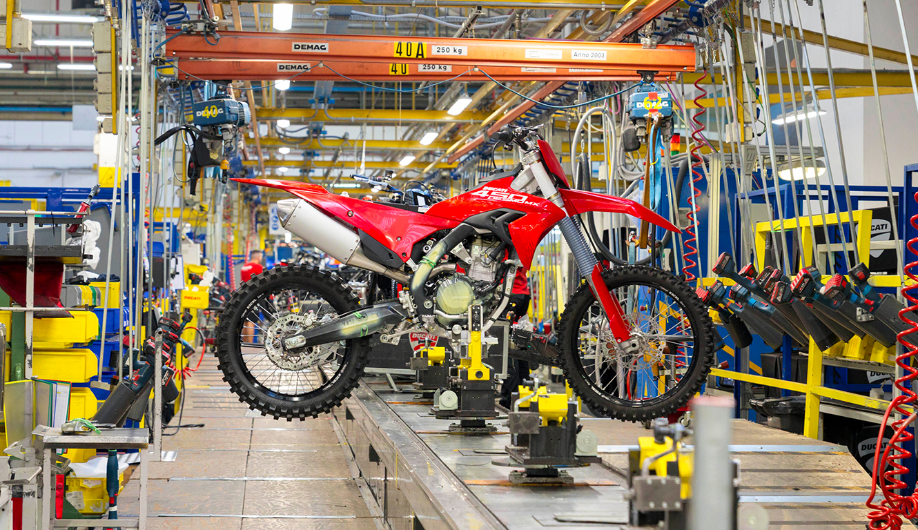 Borgo Panigale, Bolonia, 15 de mayo de 2025 – Comienza la producción de la nueva Desmo450 MX, la primer a moto de motocross de Ducati en la historia, en la fábrica de Borgo Panigale. Tras el segundo podio mundial conseguido por Jeremy Seewer en el Gran Premio de Francia, la primera Desmo450 MX salió de la línea de producción. La celebración del evento contó con la presencia de Tony Cairoli, quien aportó su invaluable experiencia en el desarrollo de la moto, y Alessandro Lupino, el piloto que logró la primera victoria y el título nacional en su debut.