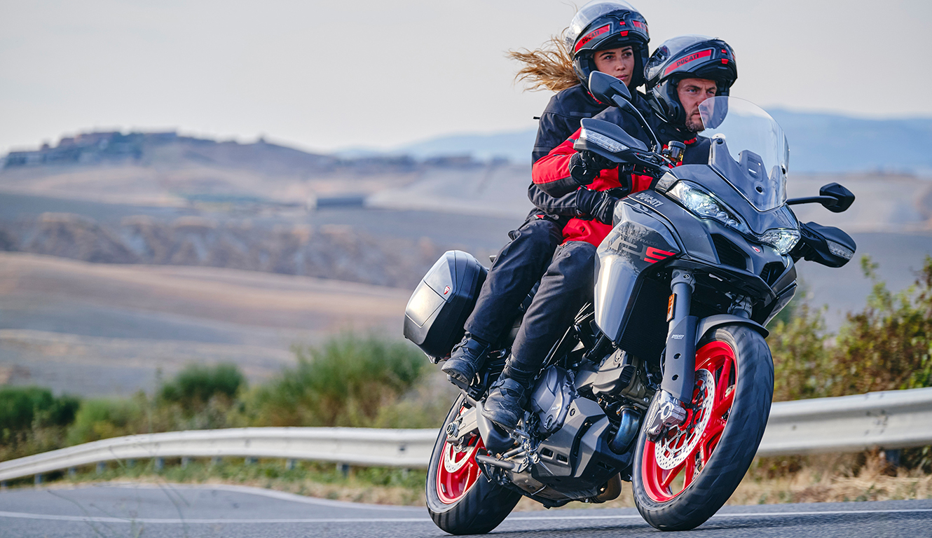 The bike's chassis is agile and intuitive, with a 19" front wheel that ensures a smooth, comfortable ride, always with the right level of reactivity and precision. Extremely versatile, the bike is also ideal for urban use, thanks to the effectiveness of the Ducati Skyhook Suspension EVO semi-active suspension system (standard on the S version), which can absorb roughness and unevenness of the ground and always guarantee the ideal set-up of the vehicle, improving safety and comfort.
